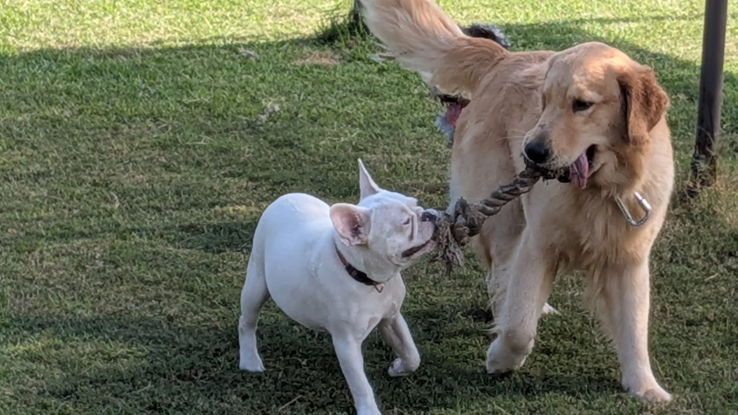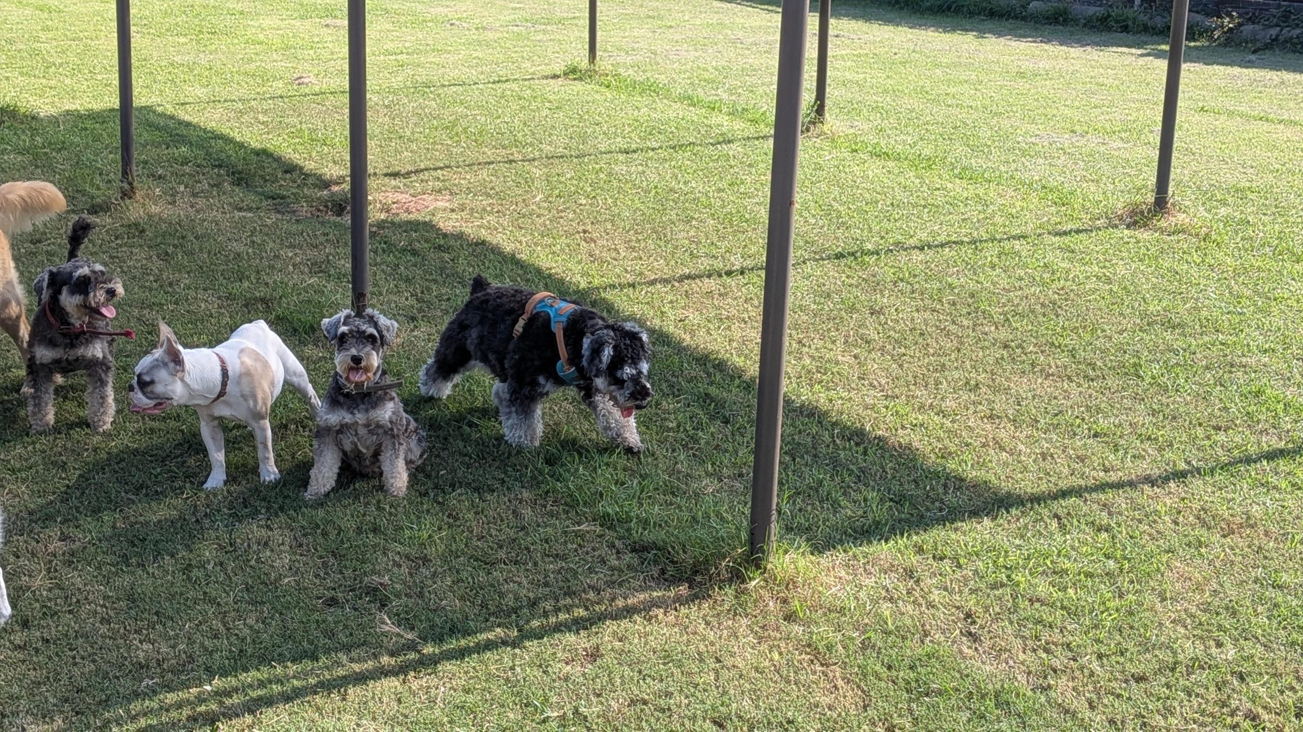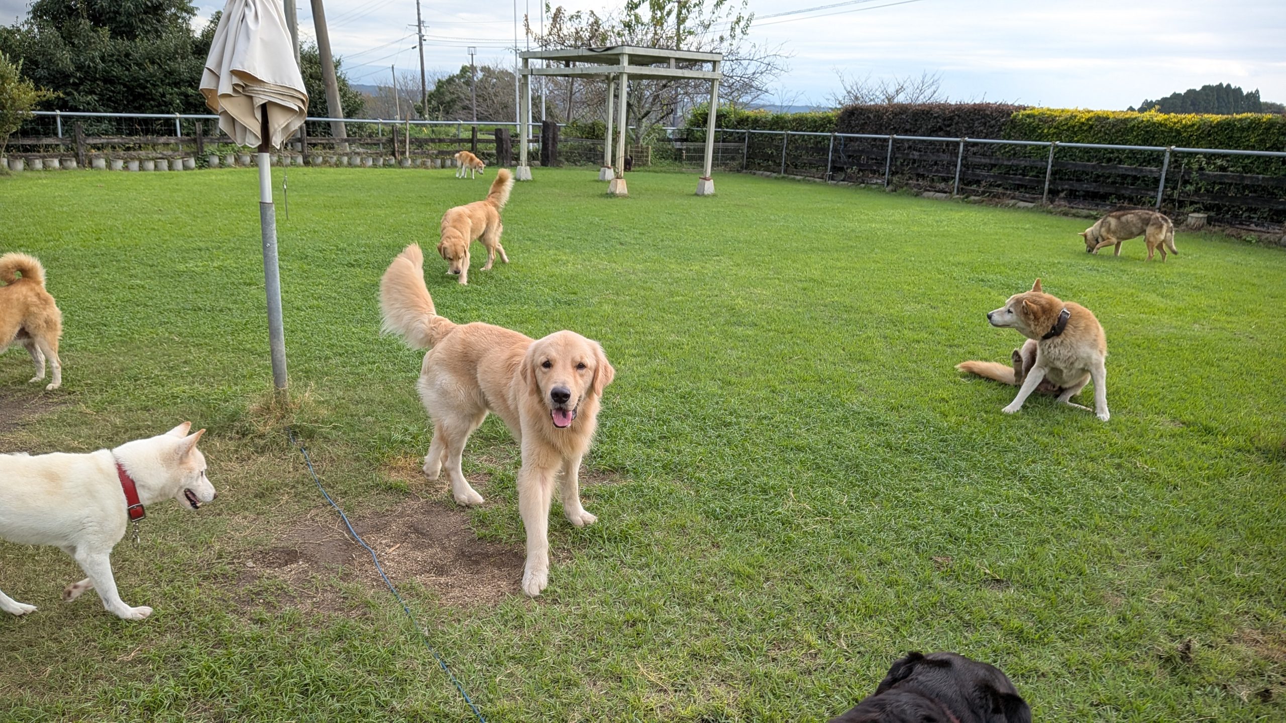 ドッグランに出れる時間は増えましたが、お昼は、エアコンのお部屋に退避…