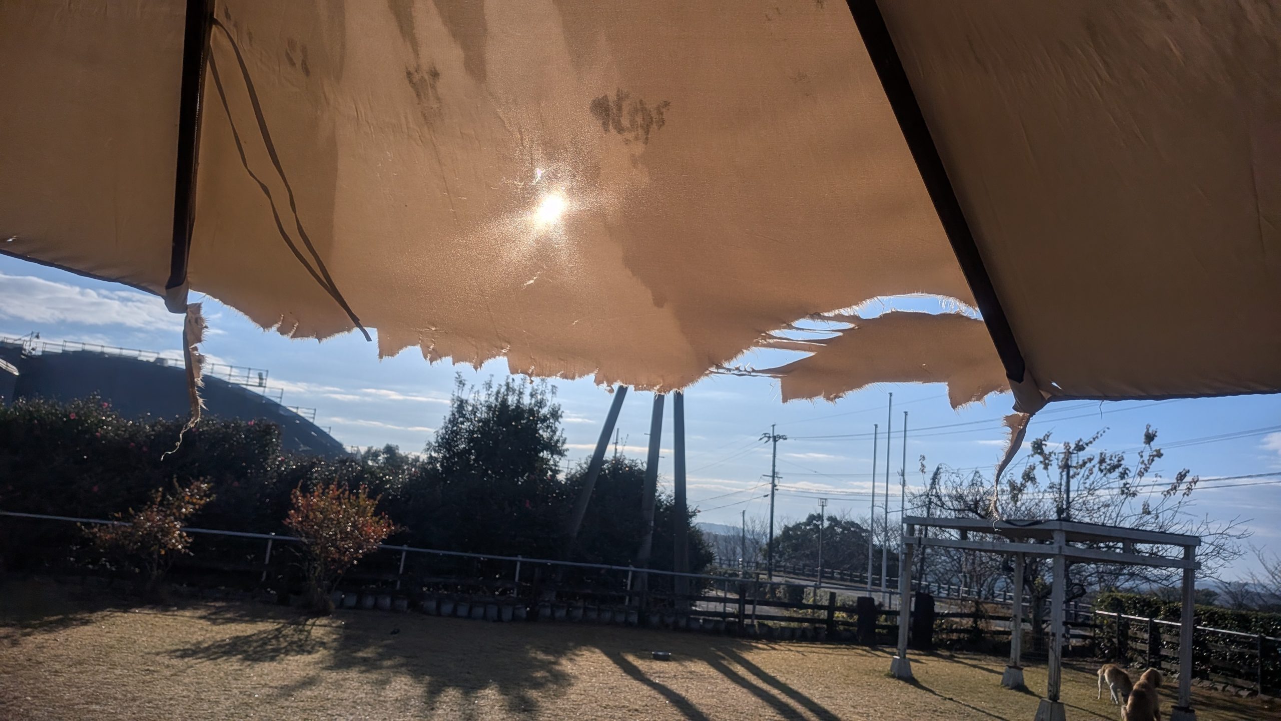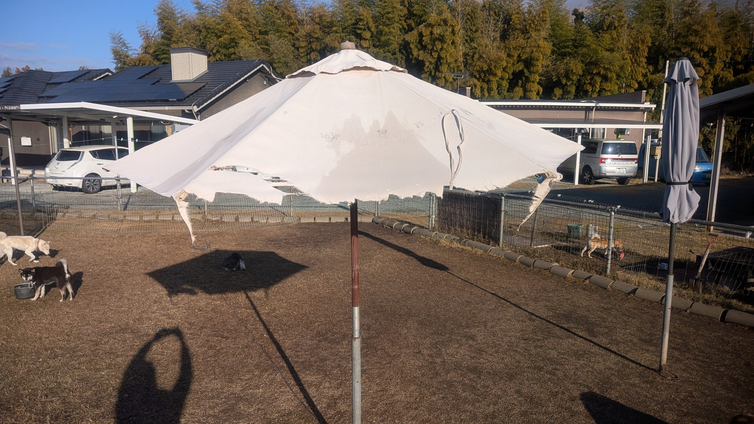 風が強い日など、パラソル畳んだままにしていると、立ち上がってパラソル食いちぎります…