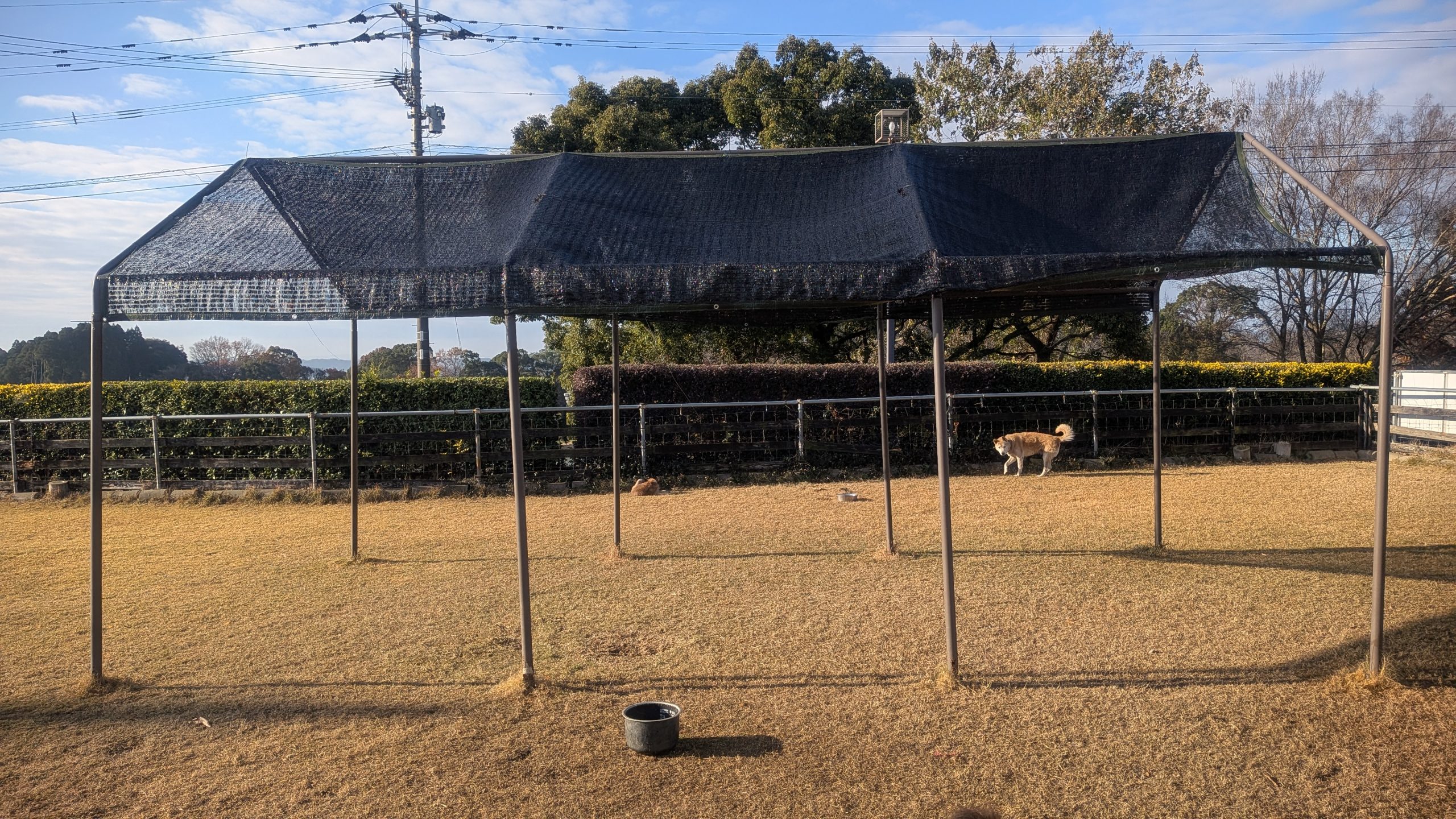 木も、おしっこに弱いですが、土台をコンクリートにしているので、パーゴラはもう4年持ってますね