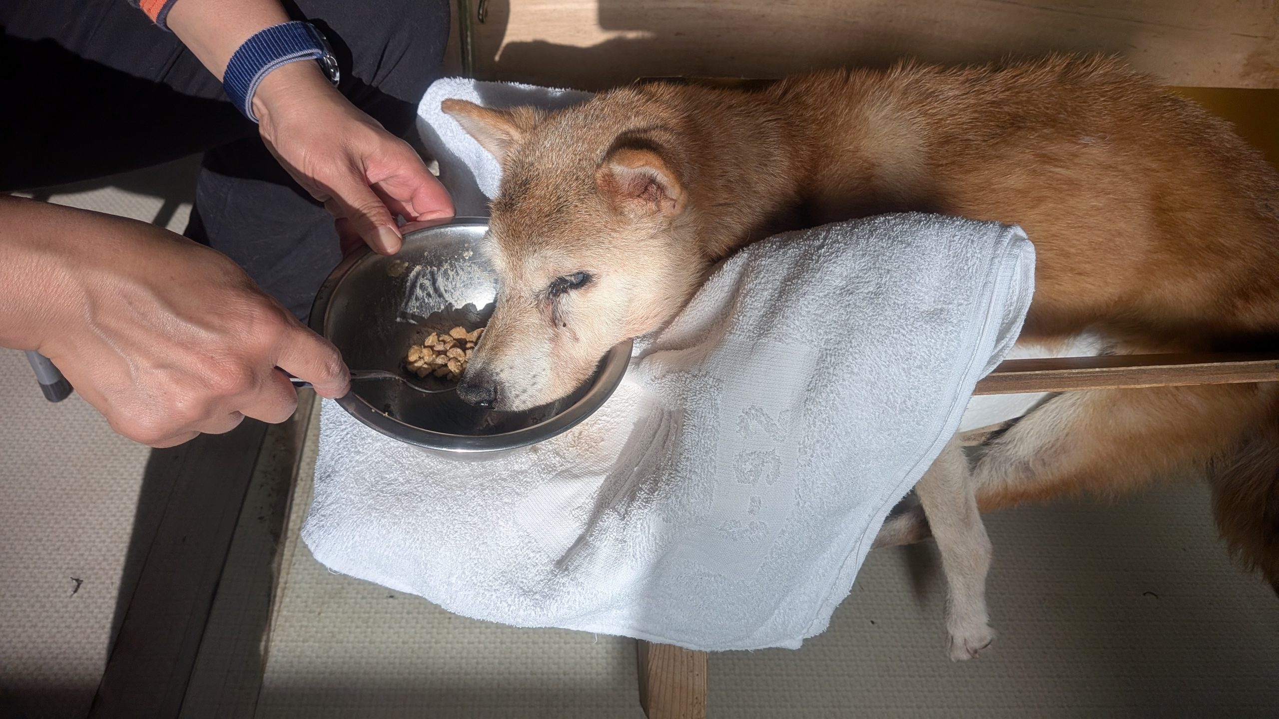 寝たきりになっても、芝生の上だとなんとか歩ける子も多いので、暖かい日はなるべくお外に出しています。