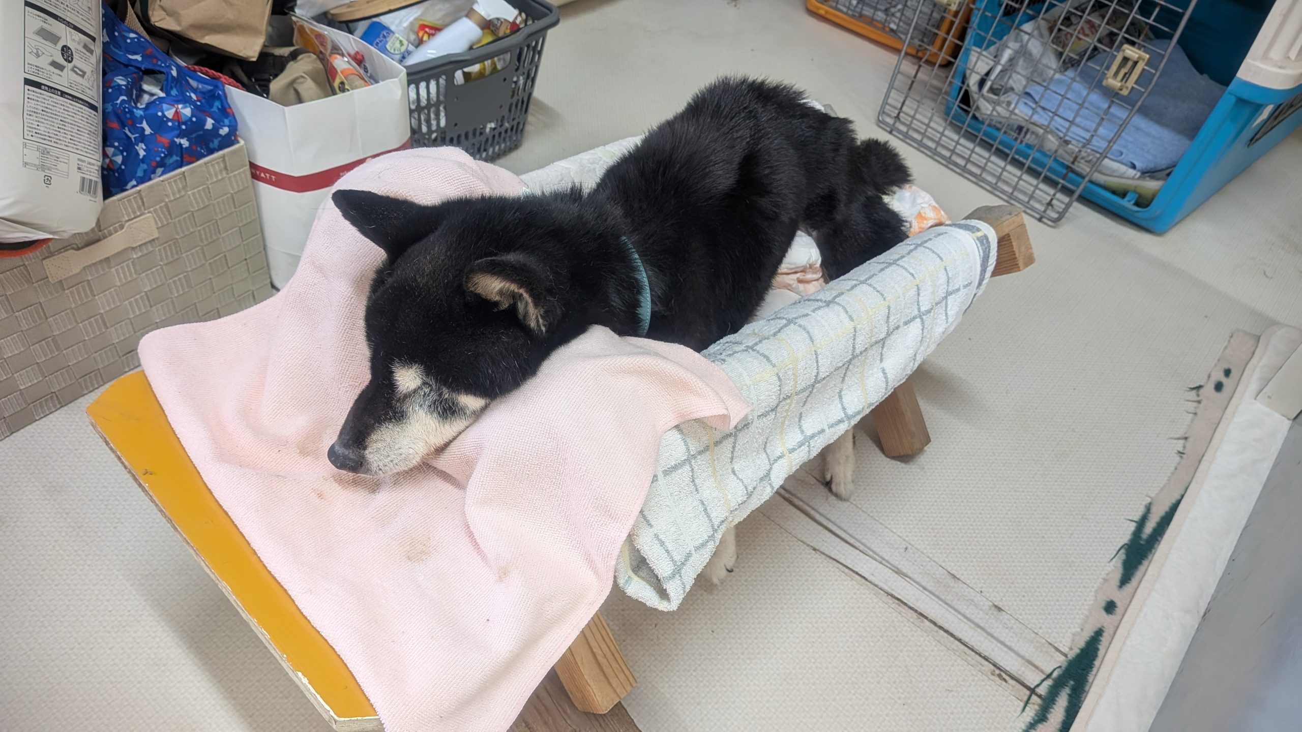 足腰が弱ったわんこのお世話をして、夜の見回りもして‥