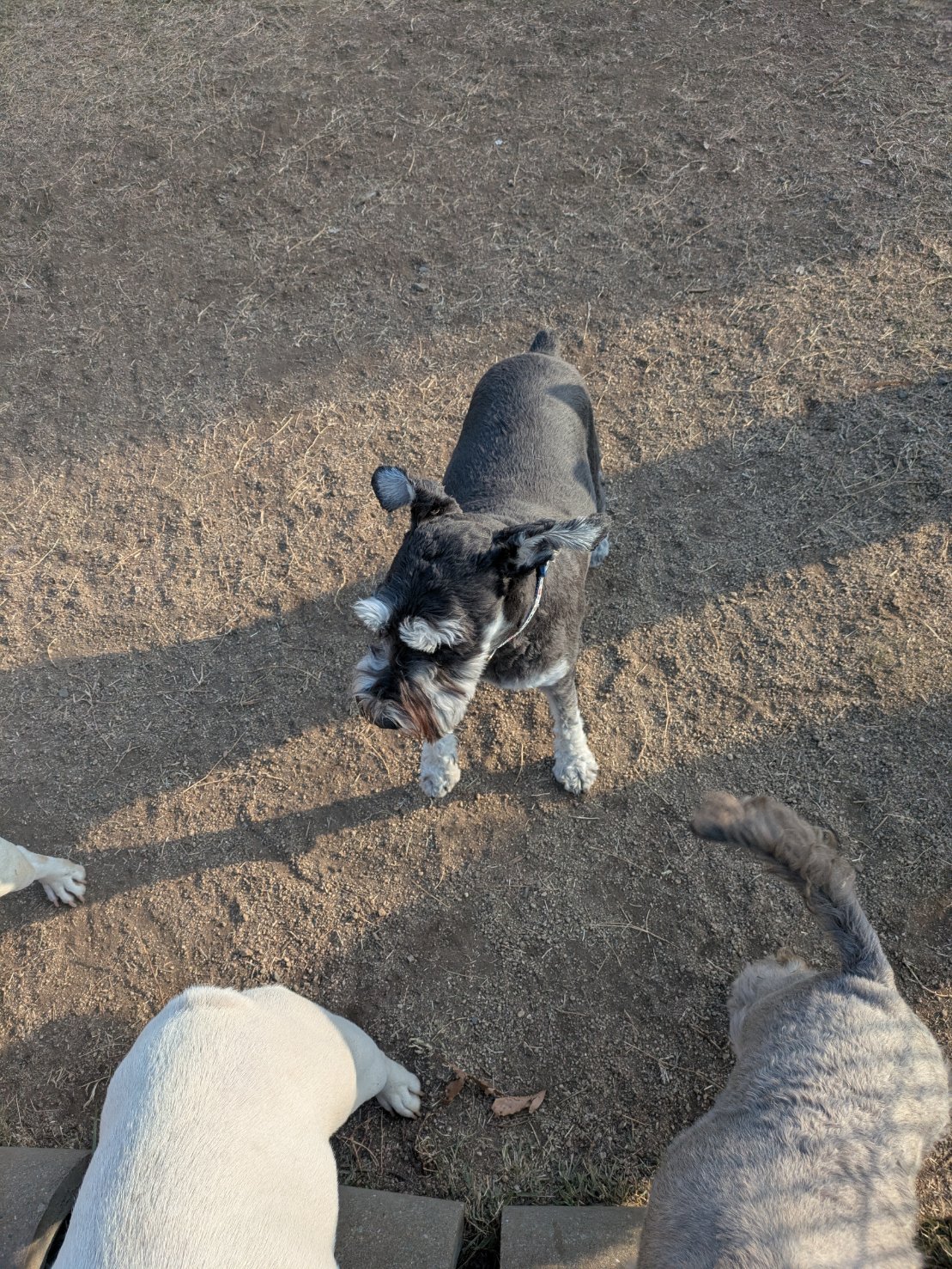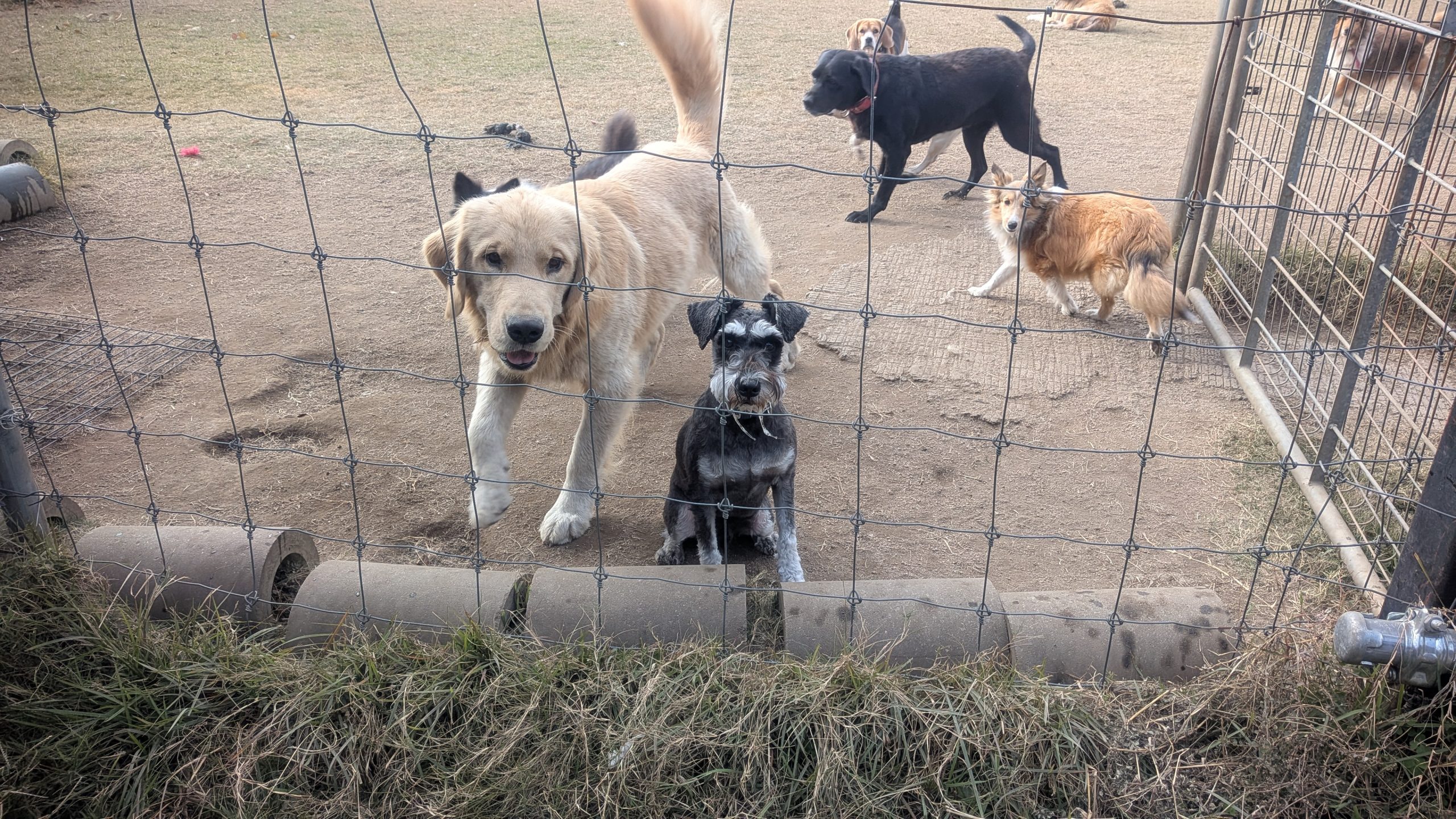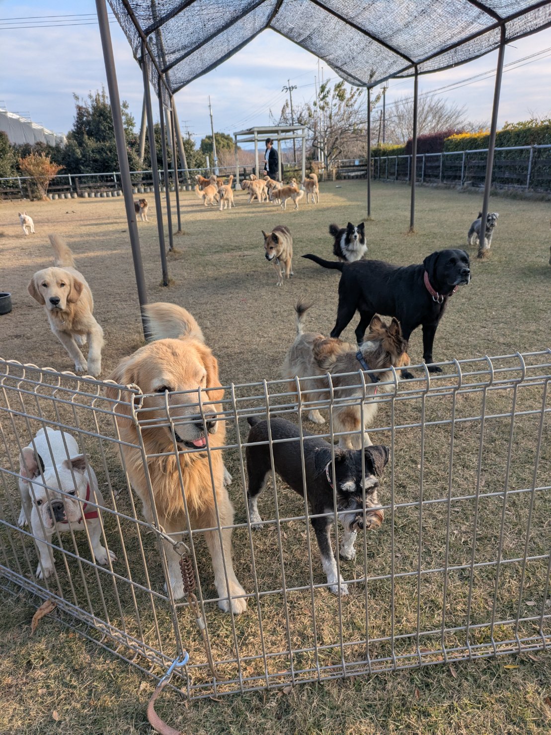 しばらくしたら、みんなと一緒にドッグランをうろうろしていました。