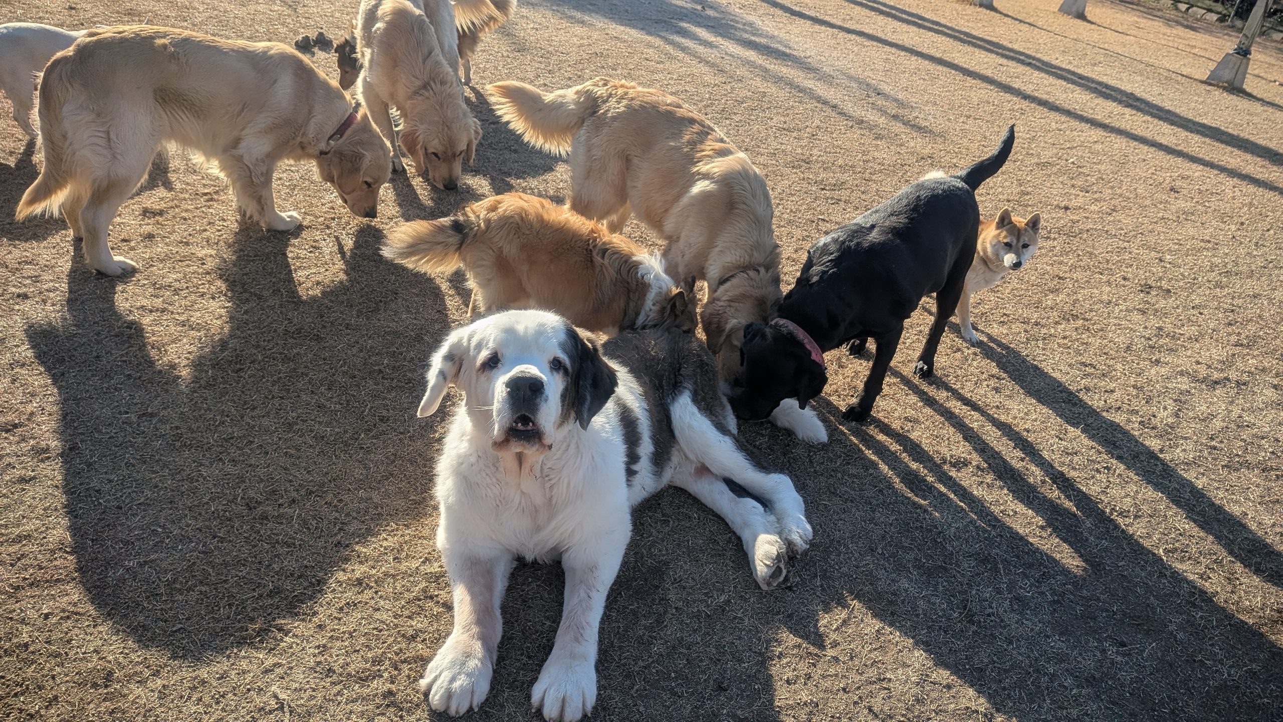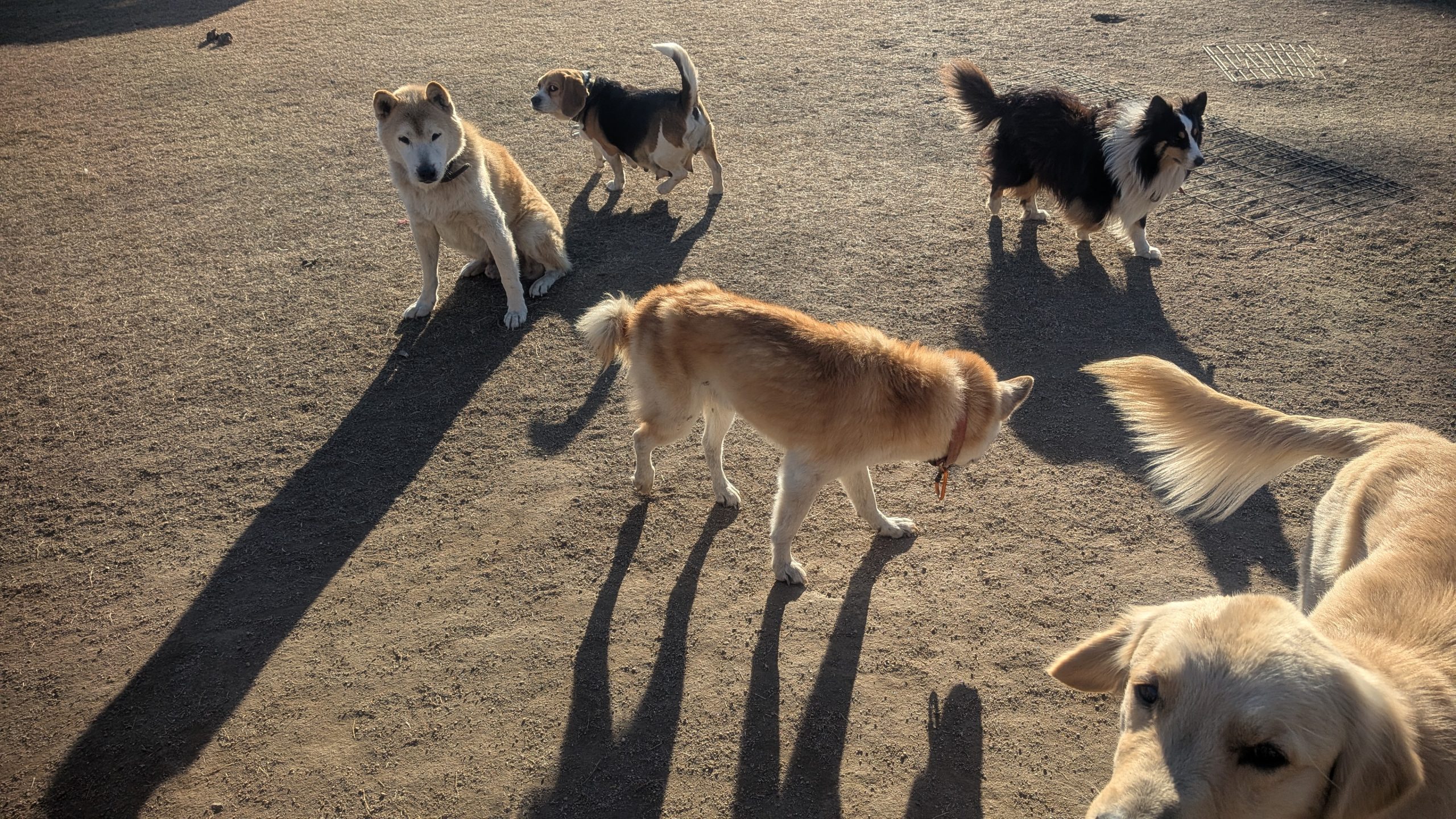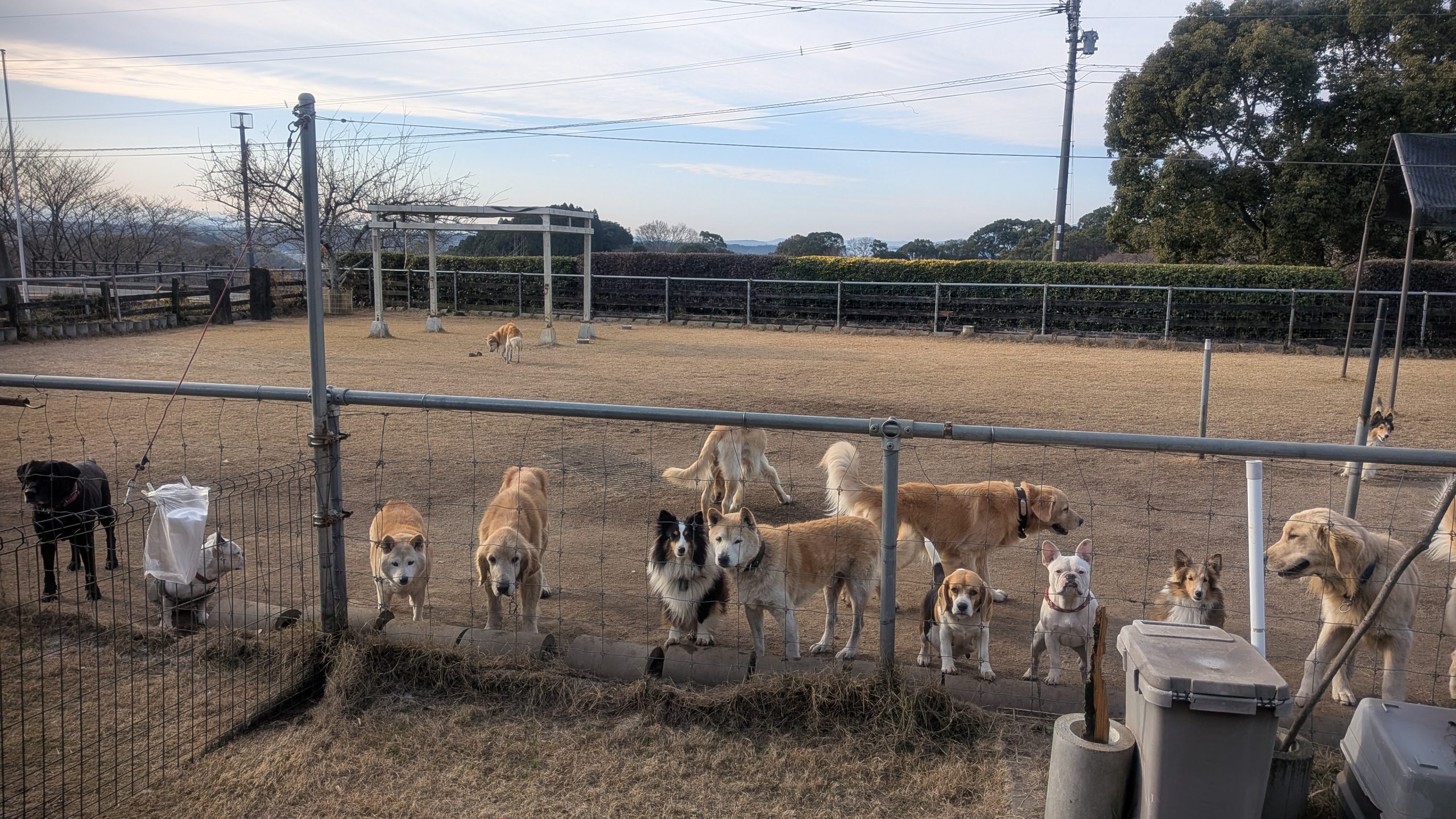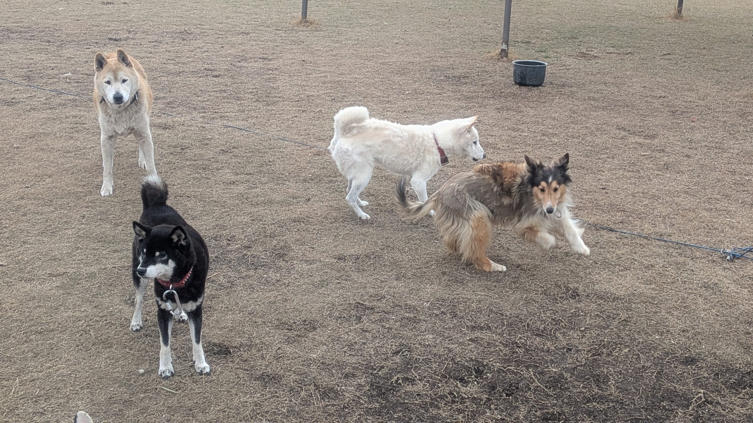 朝ご飯を食べて、お昼は、天気のいい日はみんなドッグランで過ごしています