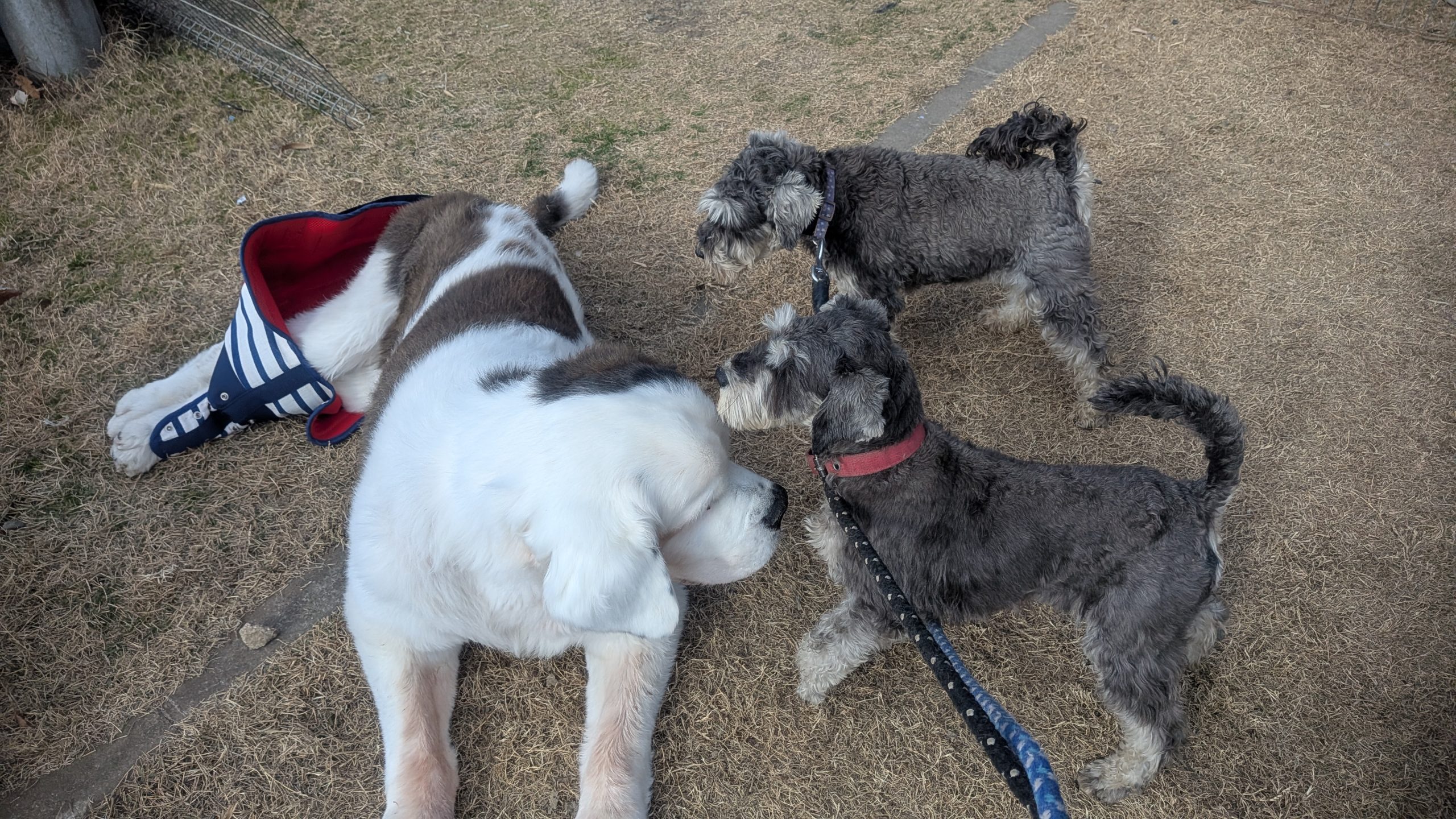 掃除を始めるためにも、みんなドッグランや運動場に出ます