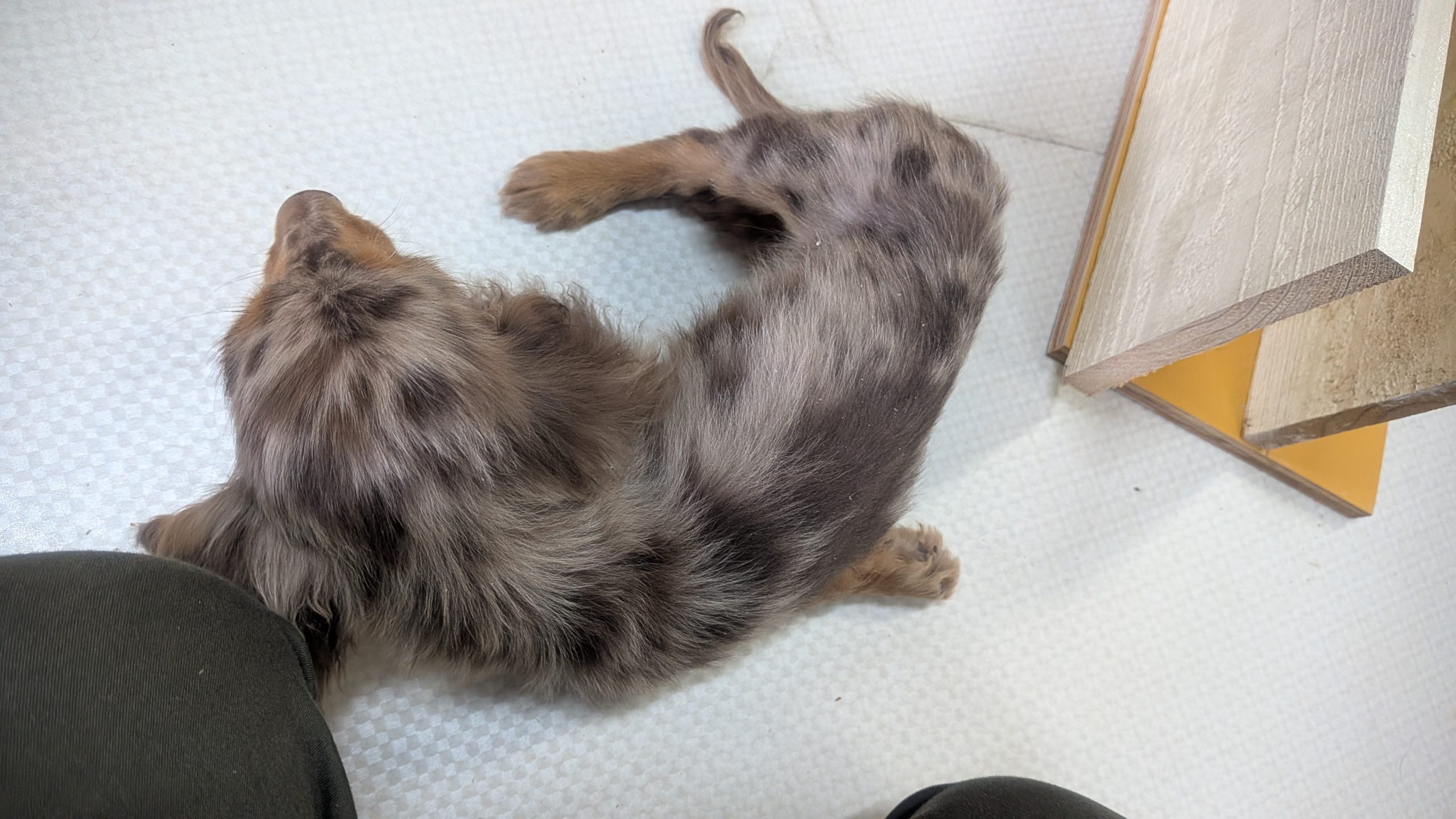 4か月で、2ヶ月のシュナちゃんより小さい子なのですが、小さすぎて成長が遅く、あまり歩けません