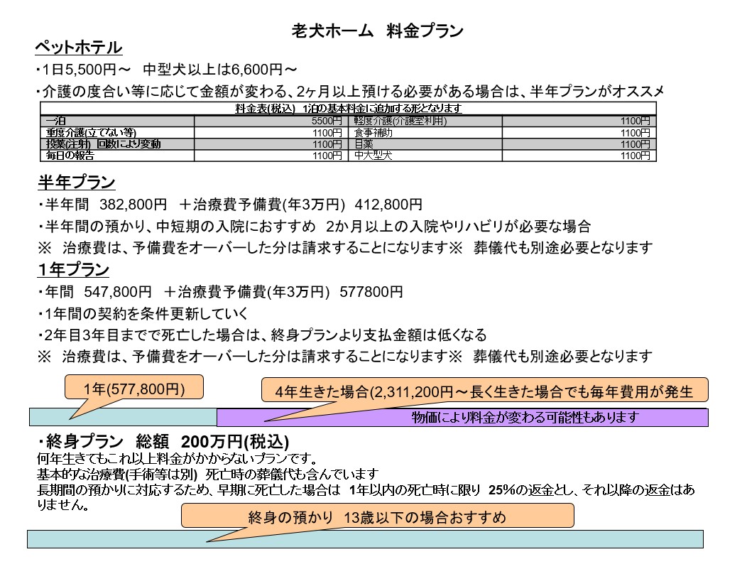 2ヶ月以上になるようであれば半年プランがオススメで、家に帰れたけど、わんこのお世話まではちょっと厳しいという時でも、預けたり連れて帰ったりが自由なので、もうちょっと療養したいという時にはお勧めです。
